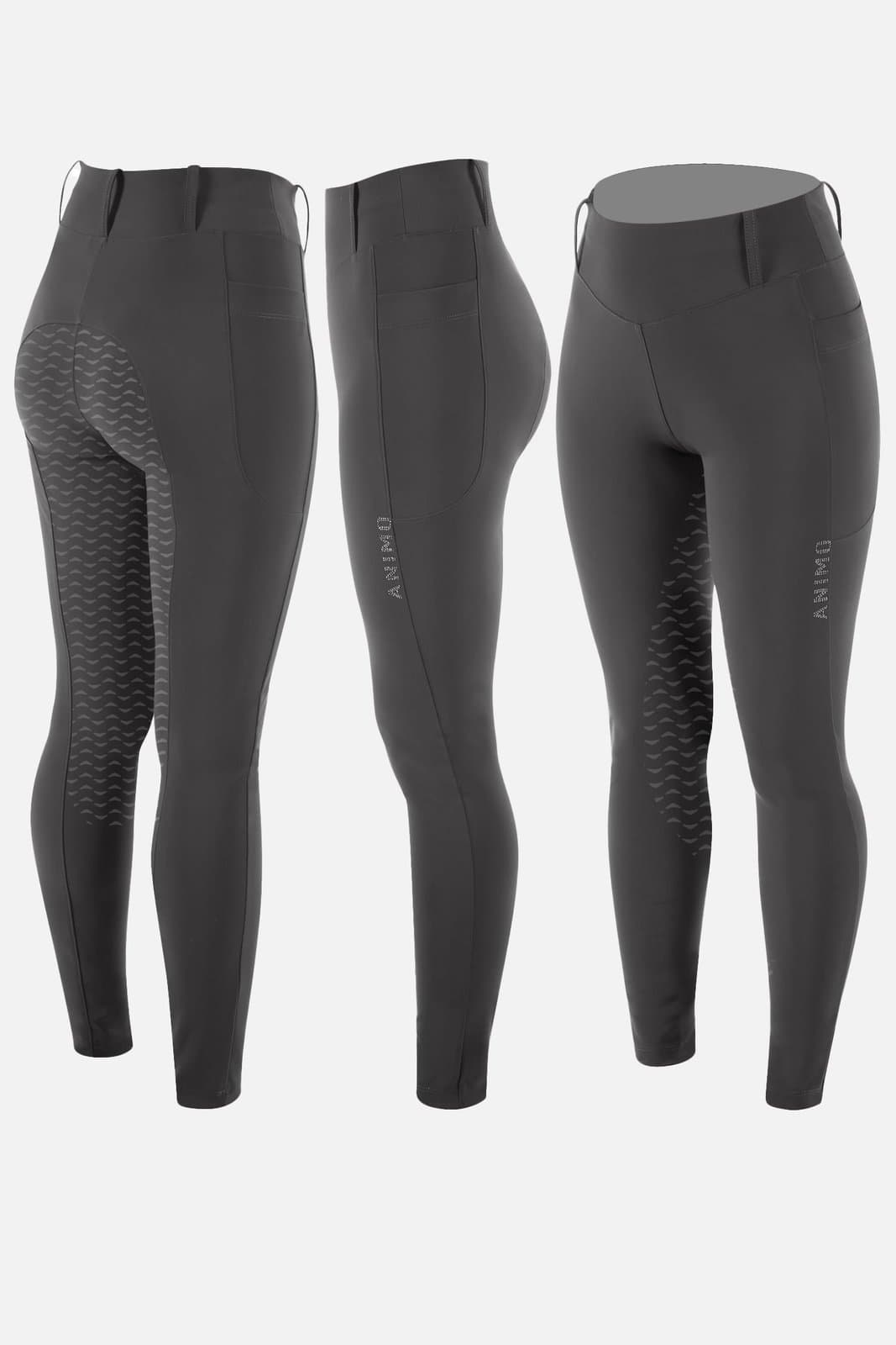 Leggings d’équitation à taille haute pour femmes, avec poignée complète. La taille est dotée d’une fermeture à deux boutons et de passants pour la ceinture. La caractéristique du tissu « Ideal », en plus d’être extrêmement léger, est que ses vêtements s’ajustent comme une seconde peau, garantissant la respirabilité et la thermorégulation naturelle du corps. Logo Animo en cristal sur la jambe gauche. Design sportif. La coupe enveloppante met en valeur la silhouette. Effet push-up Logo Animo sur la jambe gauche. Design classique. FABRIC NEXT 72% Polyamide – 28% Elastan