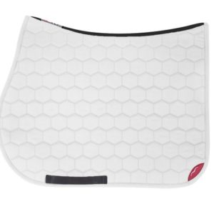 Le tapis de selle dressage Animo Wenyl est fonctionnel et élégant. Le piquage en nid d’abeille répartit l’effet de la pression de manière uniforme sur le dos du cheval.