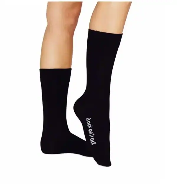 Fabriquées en polyester 88 %, élasthanne 7 % et nylon 5 %, infusées de minéraux. Disponible en noir et avec le logo Back on Track® sur le talon.