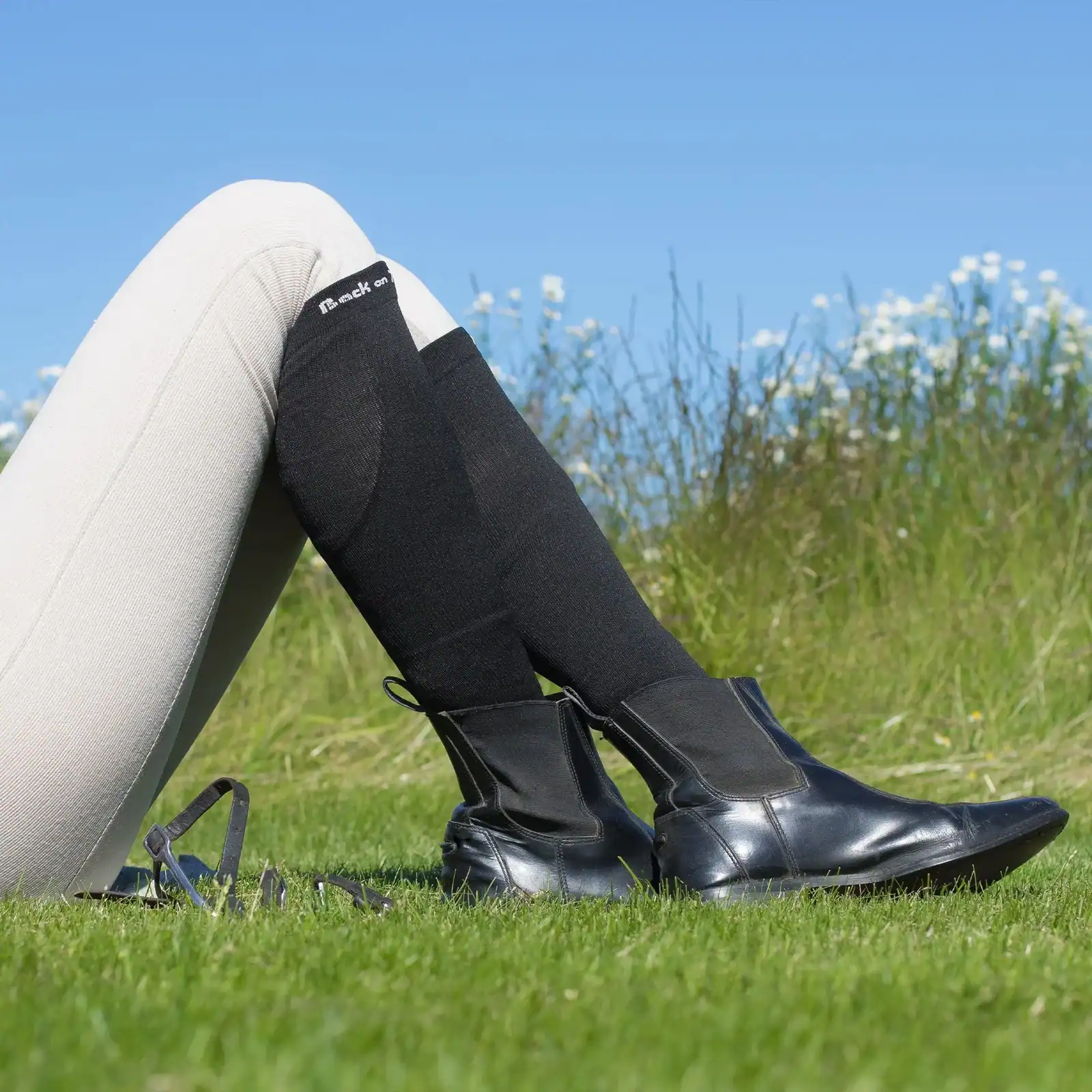Les chaussettes « Nikki » sont fabriquées dans un matériau Welltex résistant et sont dotées d’une semelle intérieure en éponge extensible sous le pied. Ces chaussettes sont donc parfaites pour les cavaliers pendant les mois d’hiver froids ou pour les athlètes actifs en extérieur. Le modèle « Nikki » est donc une chaussette d’entraînement idéale pour tous les athlètes et les sportifs. Ce modèle se caractérise également par un léger effet de compression. Fabriquées en polyester contenant de la céramique 88 %, élasthanne 7 % et nylon 5 %. Disponible en noir et dans les tailles suivantes : S (35-37) M (38-39) L (40-42) XL (43-45)