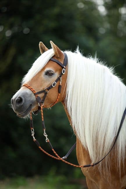 Notre Bridon Syringa peut être utilisé sans mors en tant que side-pull ou en tant que Bitless-Bridle avec des rênes croisées.