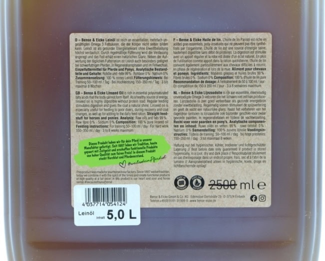 » préssée à froid et fabriquée de manière douce, riche en linol et acide alphalinolen. Améliore la vitalité, la musculature, le métabolisme et la digestion »