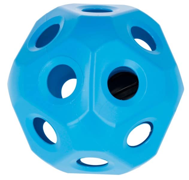 La boule à foin HeuBoy de Kerbl est une occupation intéressante et assure une prise de nourriture lente et saine. La boule est fabriquée en matériaux robustes et résiste à tous les temps. Une grande ouverture munie d’un bouchon à vis permet de la remplir facilement avec du foin. Les animaux n’ont plus qu’à arracher progressivement le foin grâce aux trous de 7 cm. La boule de foin peut simplement être posée sur le sol ou attachée à une corde. Grâce à sa forme, qui n’est pas tout à fait ronde, elle ne roule jamais bien loin, même si elle n’a pas été attachée.