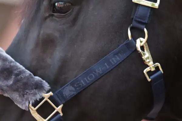 Pour les chevaux plus sensibles, le licol demi-fourrure Show-Line est le choix idéal. Il comporte une muserolle et une têtière recouvertes de fausse fourrure, offrant une protection supplémentaire à ces zones sensibles du visage et de la tête du cheval. La têtière est réglable des deux côtés, ce qui permet un ajustement personnalisé, et la courroie de gorge se fixe à l’aide d’un anneau coudé pour éviter que le mousqueton ne frotte contre la joue. Ce licol est conçu pour que votre cheval soit confortable et toujours protégé.