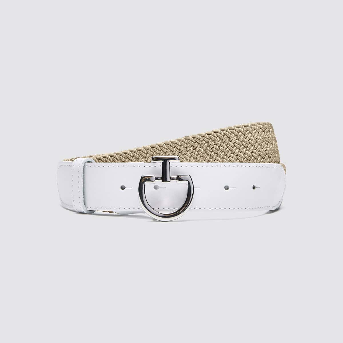 Cette ceinture pour femme est fabriquée en rayonne élastique et est créée avec des bandes de cuir tissées sur l’élastique. Elle est dotée d’un embout en cuir lisse et d’un fermoir en métal avec logo. Cette ceinture est fine et élastique, elle ne sera donc pas encombrante et ne limitera pas les mouvements pendant les activités sportives.