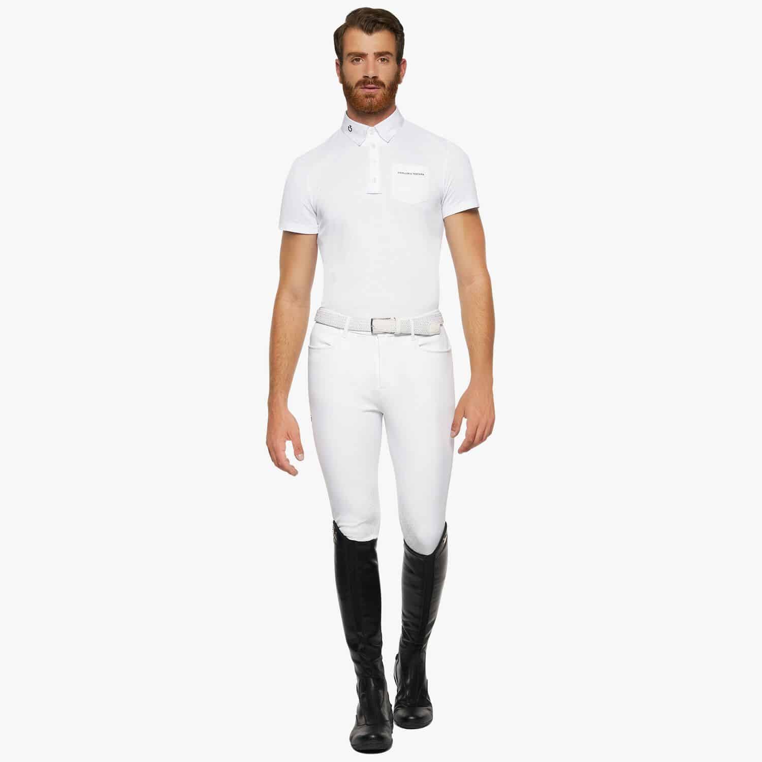 Cavalleria Toscana présente cette chemise de compétition qui allie proportions équilibrées et souci du détail. En tissu technique piqué respirant, elle a été dotée d’une coupe ajustée et est élégamment bordée d’inserts en jersey sur les côtés et d’une poche poitrine en tissu perforé. Le col en popeline avec un logo brodé et la fermeture à boutons de la marque complètent le look.