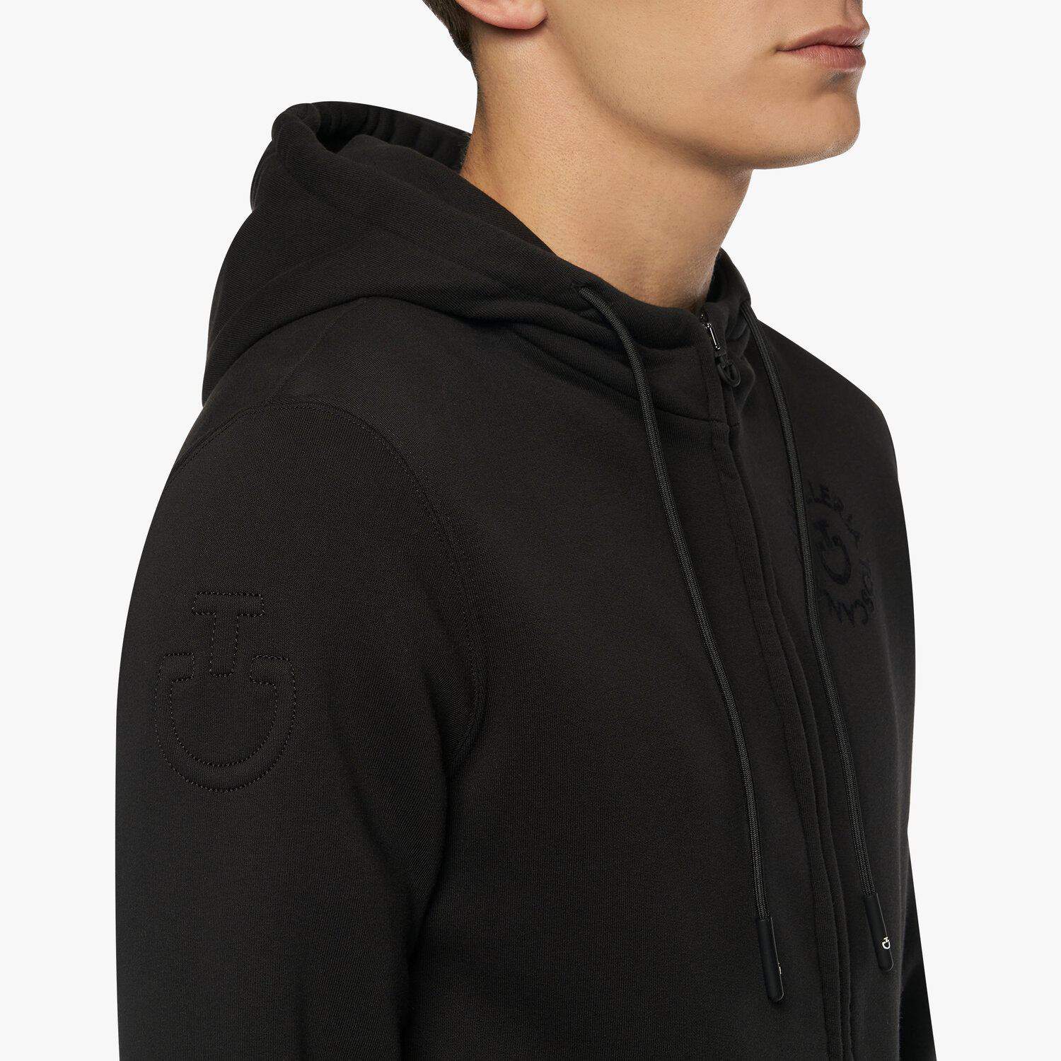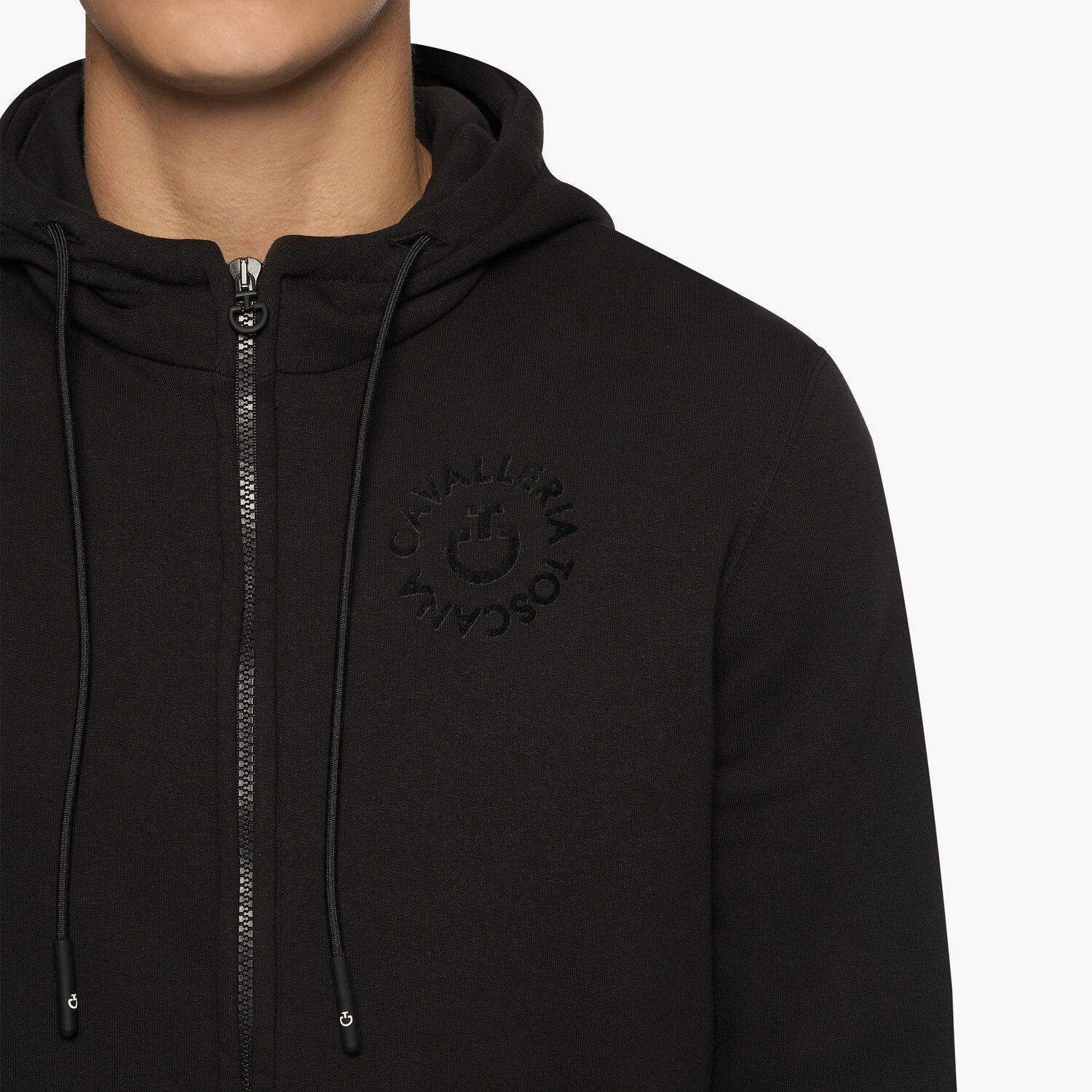 L’héritage de la Cavalleria Toscana rencontre une pièce de loisir classique conçue pour être utilisée à cheval ou pendant votre temps libre. Ce sweat-shirt est en coton de haute qualité, décoré d’un logo floqué sur la poitrine. Son design pratique comprend une capuche pour vous protéger du vent, de grandes poches pour transporter vos affaires essentielles et une fermeture éclair fermée par le logo CT emblématique.