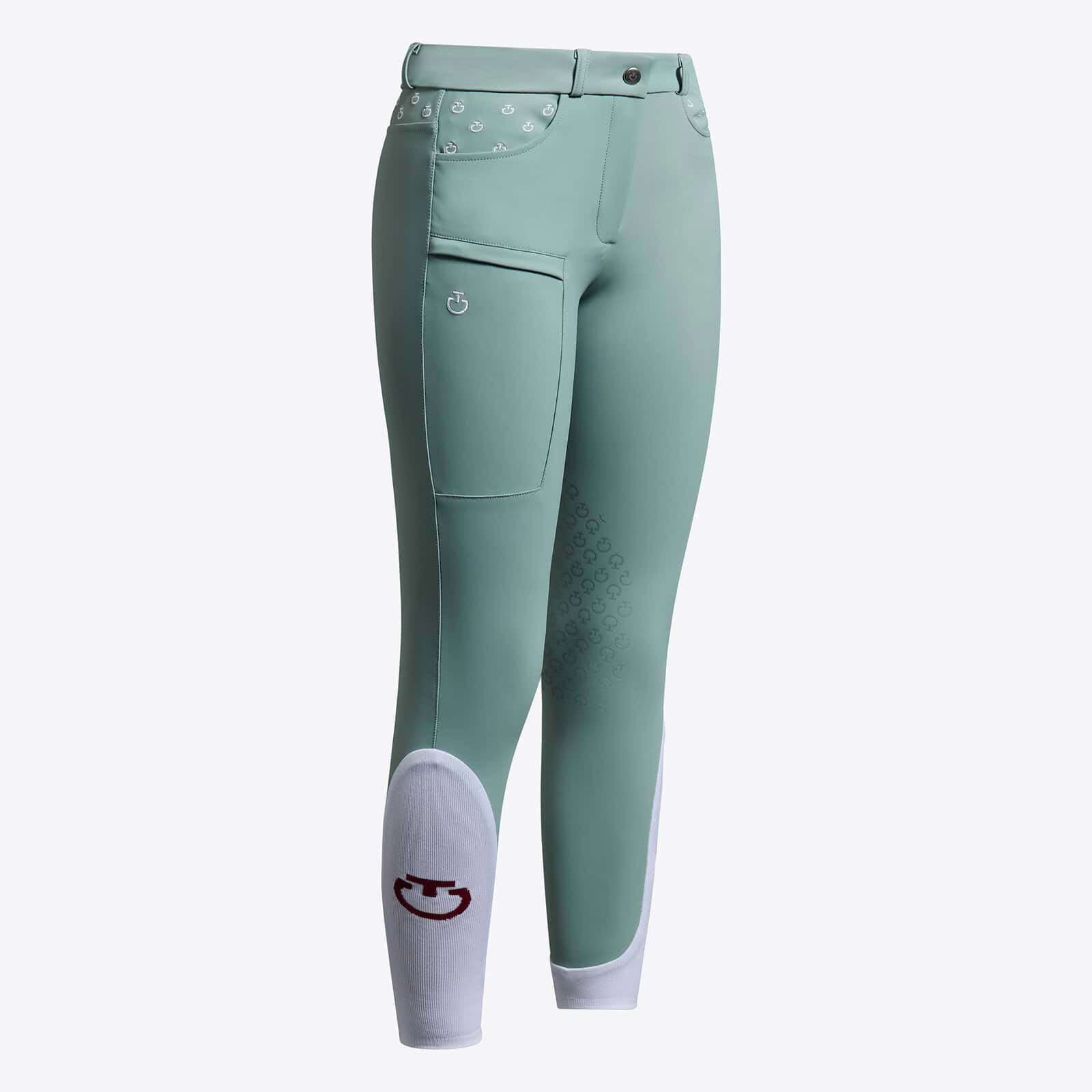 Culotte de saut d’obstacles Cavalleria Toscana pour fille, genoux serrés et taille régulière en jersey technique respirant et confortable.
