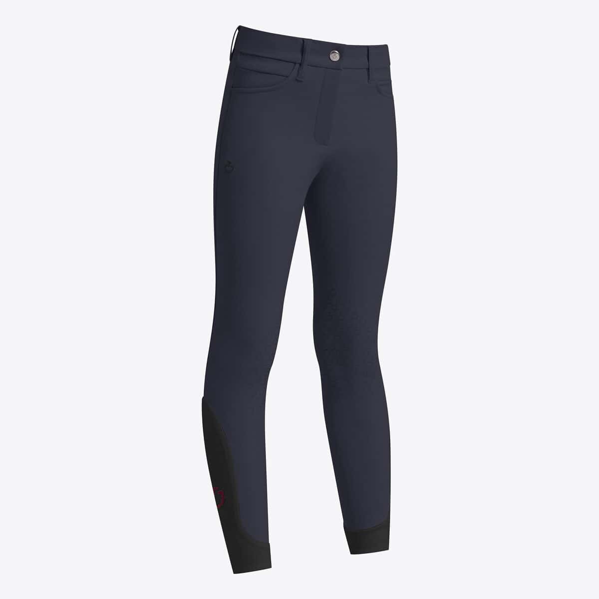 Le jersey technique extensible dans les 4 sens utilisé pour cette culotte d’équitation offre un maximum de confort et de respirabilité pendant l’équitation, en se déplaçant facilement avec le corps. Le matériau possède des propriétés antibactériennes, parfaites pour l’entraînement. La poignée transparente au niveau des genoux permet une stabilité sur le cheval, tandis que les chaussettes en tricot extensible s’adaptent facilement sous les bottes. Elle présente un logo brodé contrasté sur l’extérieur de la chaussette et deux poches avant. La fermeture pratique consiste en une fermeture éclair sur le devant avec bouton.