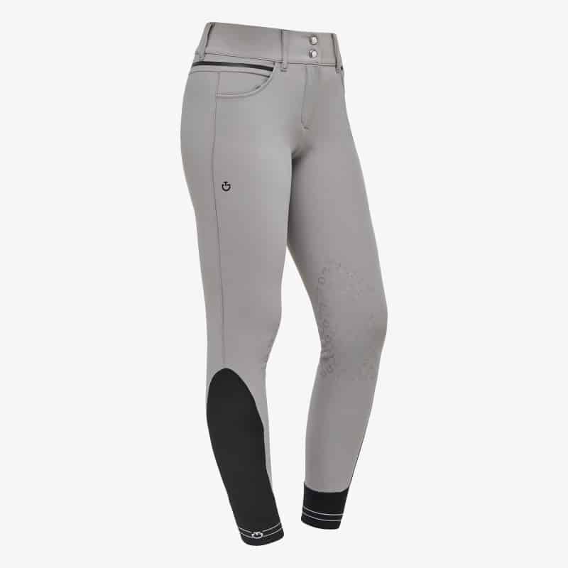 Cavalleria Toscana actualise et embellit un essentiel de la garde-robe équestre. Ce pantalon pour femme peut être porté pour sa taille haute et ses coutures ergonomiques qui façonnent la coupe et flattent la silhouette. Le modèle est fabriqué en tissu technique bi-stretch respirant et flexible dans quatre directions pour une liberté de mouvement maximale et est terminé par des inserts en silicone full grip qui offrent la bonne prise pendant l’équitation. Le design est complété par des chaussettes élastiques confortables sous les bottes et personnalisées avec le logo de la Cavalleria Toscana.