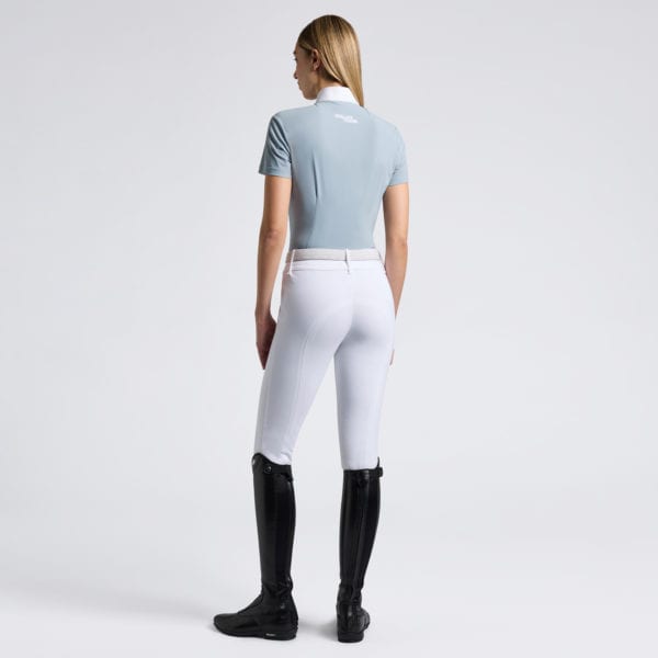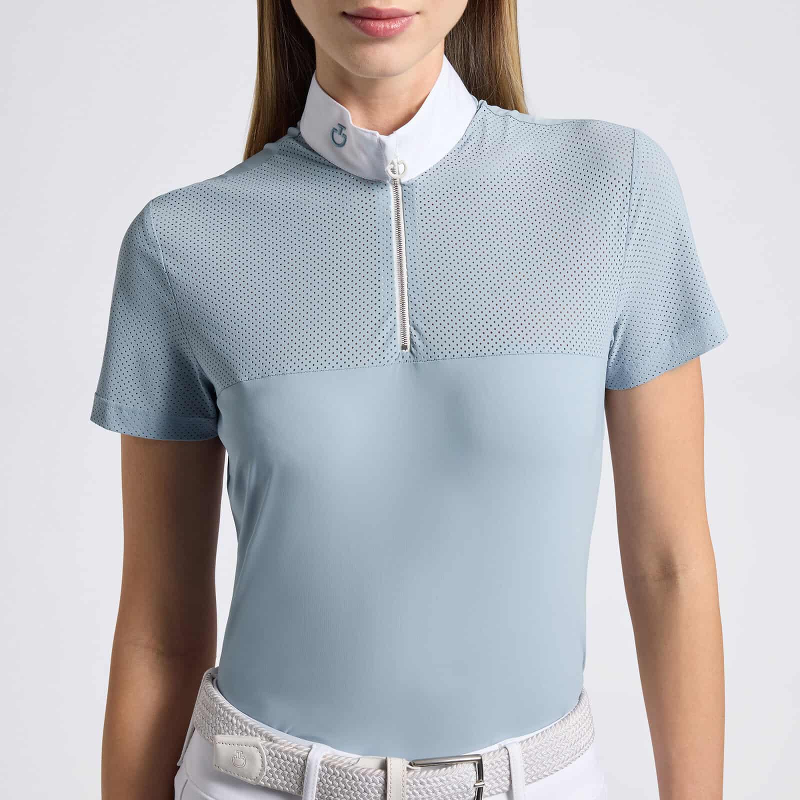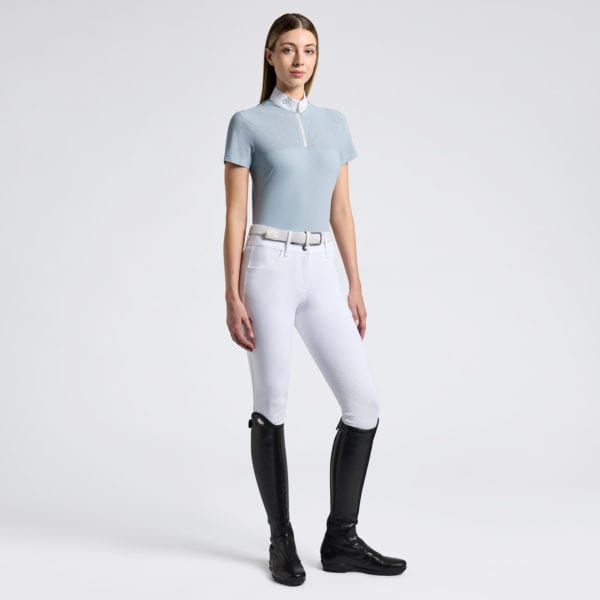 Le maillot de compétition à manches courtes pour femmes de Cavalleria Toscana est conçu pour offrir des performances élevées et un style impeccable. Fabriqué en tissu technique léger avec des inserts en jersey perforé, il assure une excellente respirabilité et un grand confort pendant les compétitions. Le col en popeline blanche et la fermeture à glissière invisible ajoutent élégance et praticité, tandis que le logo brodé thermo-appliqué sur le dos et le col apporte une touche distinctive. Avec sa coupe ergonomique et ses matériaux de haute qualité, ce maillot est le choix idéal pour les coureurs à la recherche d’un vêtement fonctionnel et raffiné.