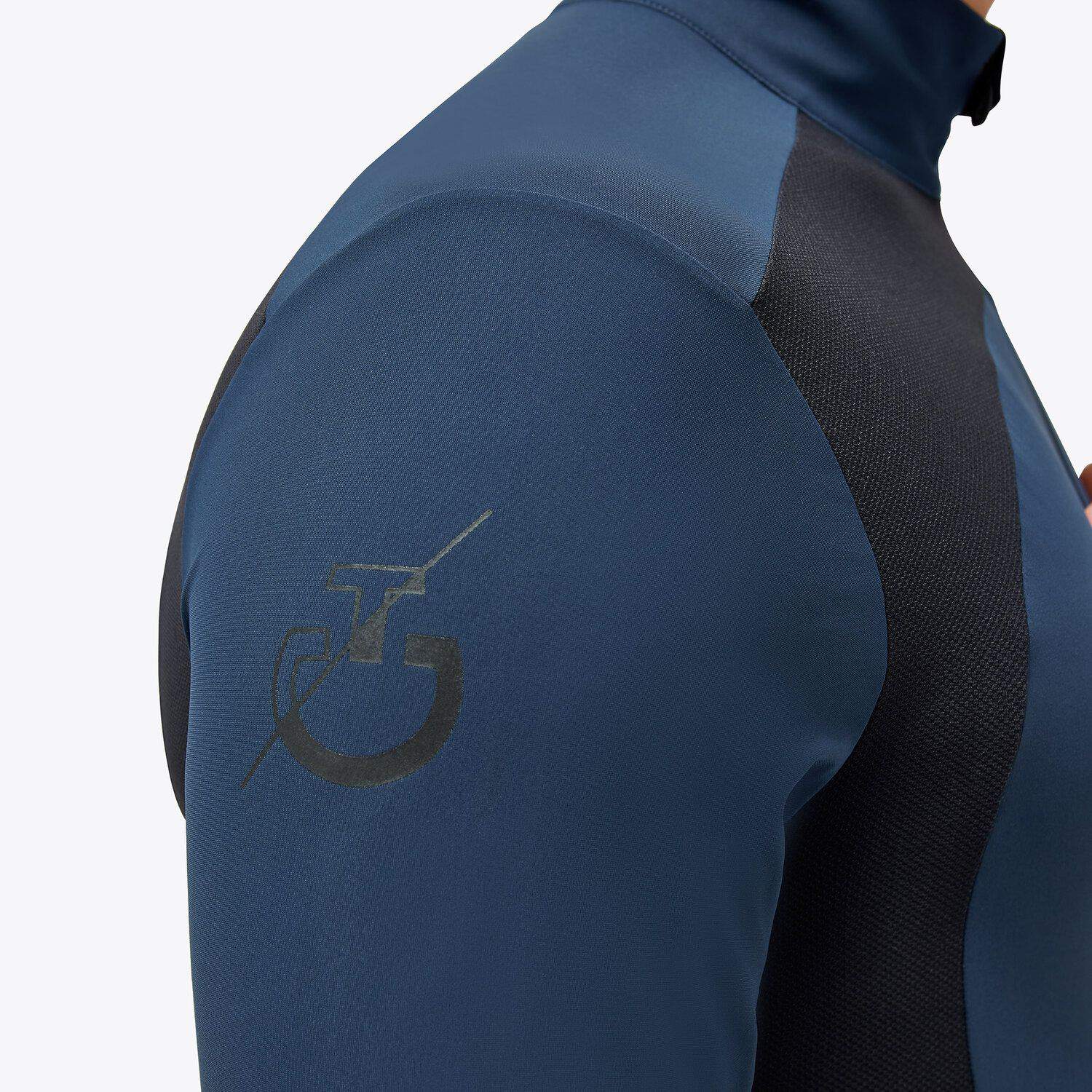 CAVALLERIA TOSCANA Polo zip training Jersey mesh (POU321) Bleu pétrole