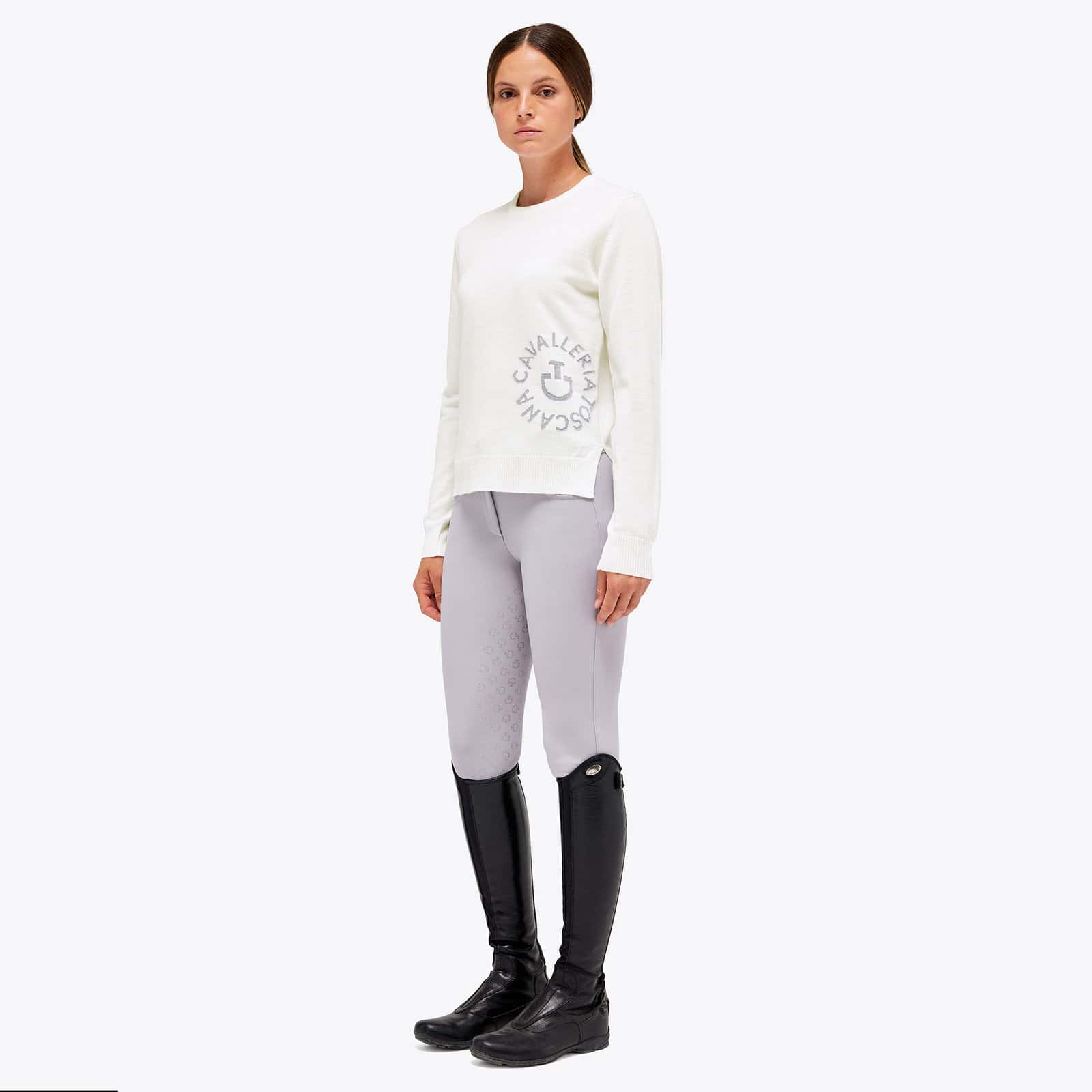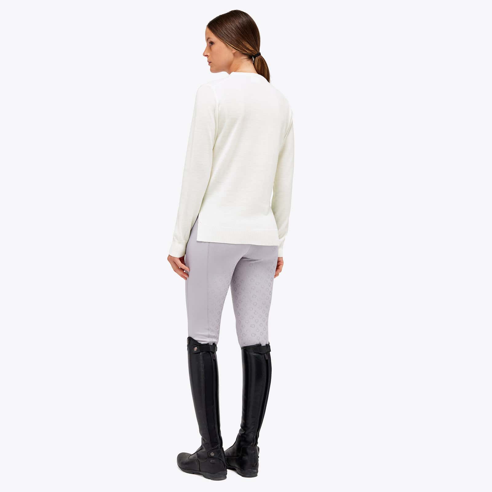 Le pull Jacquard CT Orbit Merinos Blend Half-Zip Sweater est un vêtement qui représente le savoir-faire et la maîtrise de Cavalleria Toscana. Le tissage Jacquard crée un design sophistiqué, tandis que la laine mérinos garantit confort et chaleur. Les délicates couleurs pastel sont parfaites pour le printemps, et les manches bouffantes ultra-féminines ajoutent une touche d’élégance au vêtement. Le résultat est un pull de grande qualité et polyvalent, qui convient aussi bien pour le travail que pour les soirées. Élégant et confortable, il est indispensable à toute femme qui apprécie la beauté des détails artisanaux.