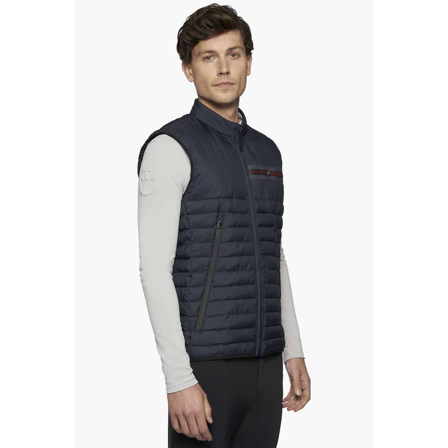 Ce gilet matelassé pour homme de style sportif est fabriqué dans une matière technique. Il garde le corps au chaud grâce à son rembourrage, tout en étant léger pour une liberté de mouvement maximale. Il protège du vent, sans entraver les mouvements. Il est doté d’une fermeture éclair frontale pratique et du logo CT.