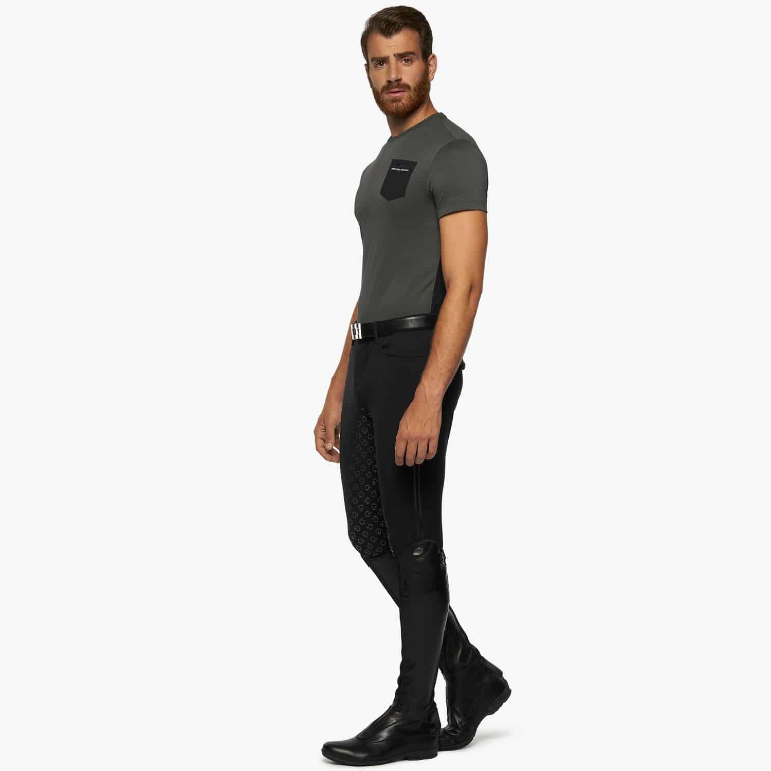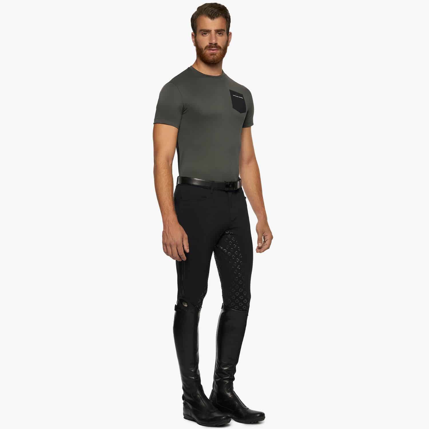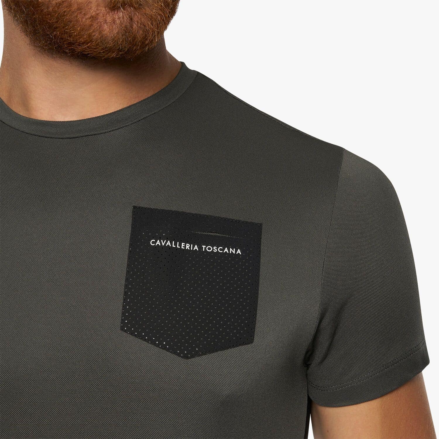 T-shirt en tissu technique piqué avec des panneaux en jersey sur les côtés et une poche poitrine en tissu perforé.