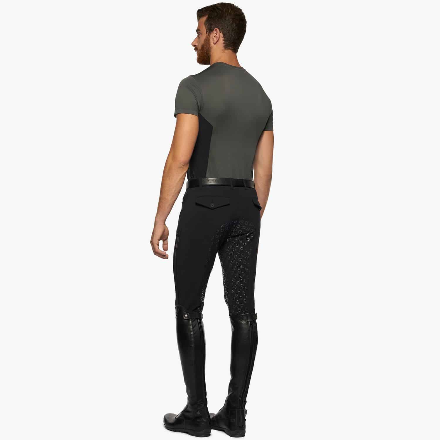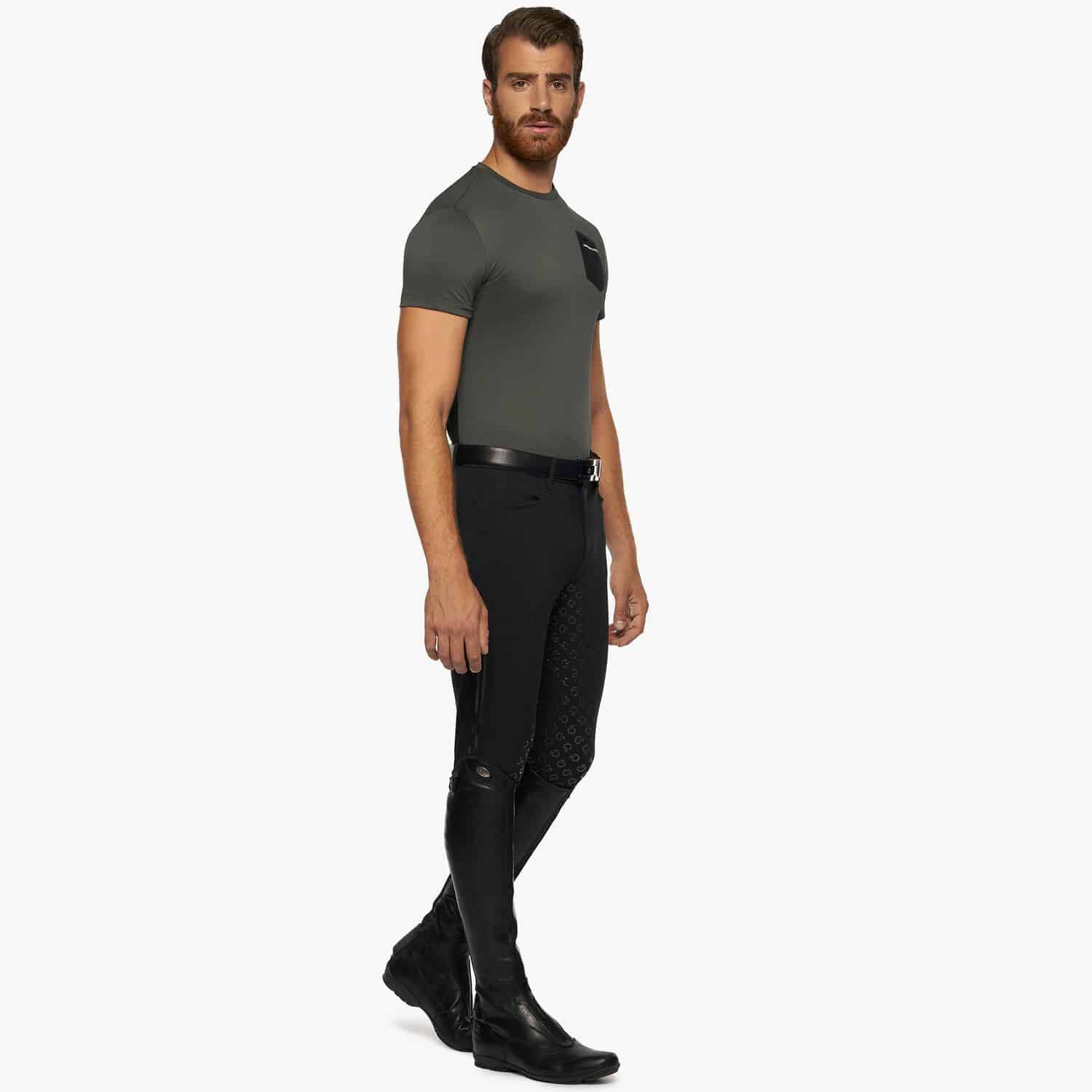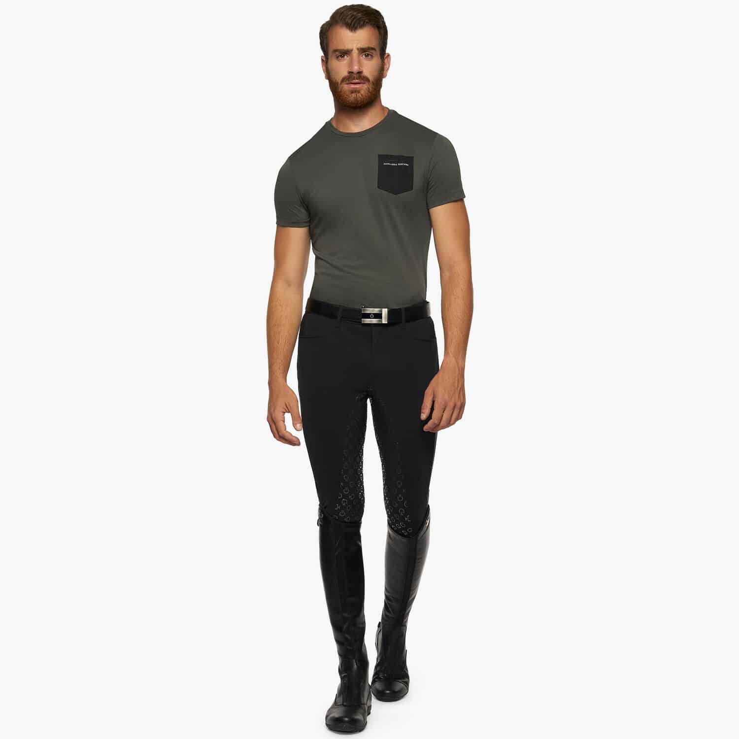 T-shirt en tissu technique piqué avec des panneaux en jersey sur les côtés et une poche poitrine en tissu perforé.