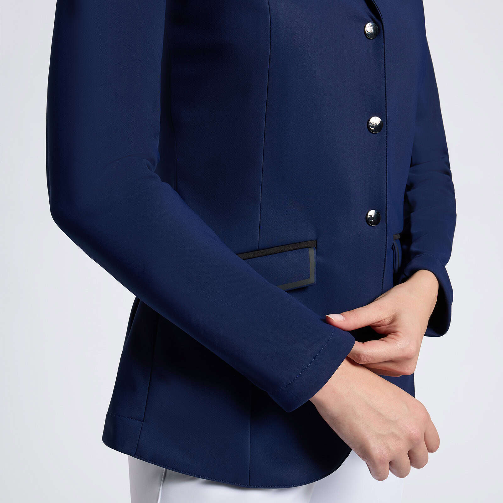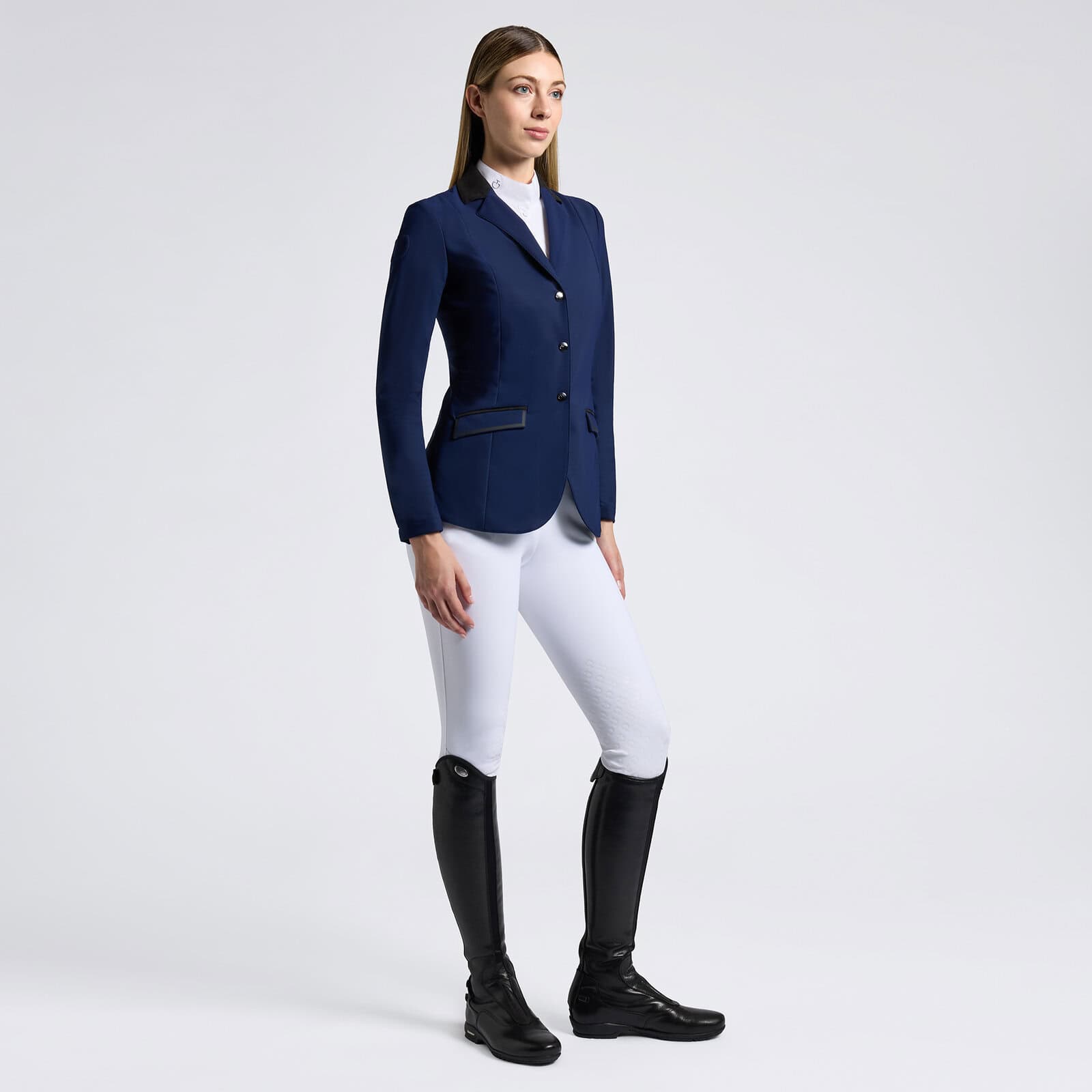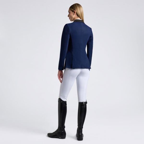La veste d’équitation en jersey léger pour femmes de Cavalleria Toscana est conçue pour offrir un équilibre parfait entre style et fonctionnalité. Fabriquée dans un tissu technique léger et extensible, elle assure confort et liberté de mouvement pendant l’équitation. Dotée d’une fermeture à glissière centrale inversée et de boutons pression de marque visibles, elle allie harmonieusement détails techniques et esthétiques. Le col en alcantara et le logo CT brodé sur la manche ajoutent une touche d’élégance, rendant cette veste idéale pour l’entraînement et les compétitions.