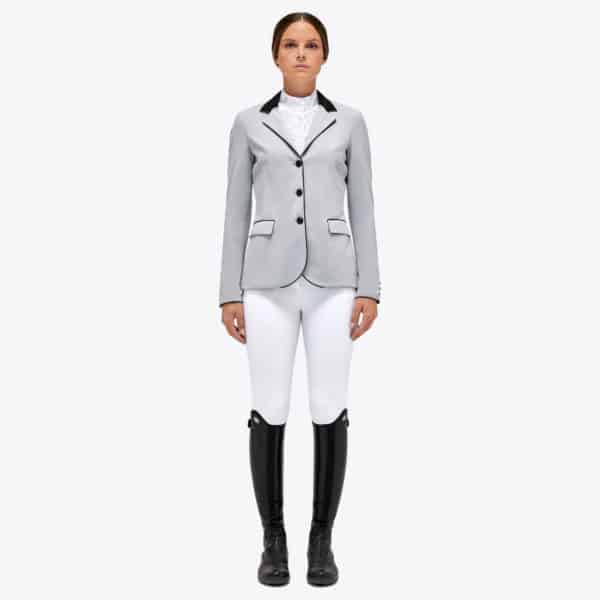 Cette veste d’équitation de coupe classique est affinée par un col en alcantara et des passepoils contrastés. La matière technique extensible 4 voies allie élégance et performance : elle suit vos mouvements et offre des propriétés respirantes, déperlantes et antibactériennes. La veste est dotée de deux poches avant et d’une fermeture à boutons sur le devant, avec un subtil logo en relief sur l’épaule.