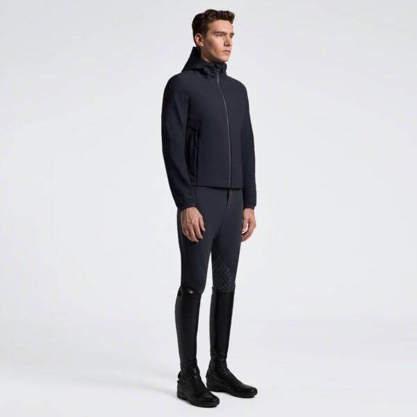 Idéale pour les activités équestres dans des conditions variables, cette veste Softshell Cavalleria Toscana allie une protection et une respirabilité exceptionnelles. Fabriquée dans un tissu technique contrecollé avec des coutures thermosoudées, elle offre une barrière fiable contre le vent et l’humidité. Le confort thermique est assuré par des zones de ventilation perforées stratégiquement placées sur les épaules et les aisselles. Le design comprend une capuche pratique avec cordon de serrage et une fermeture éclair centrale sur toute la longueur avec une finition caoutchoutée, offrant une protection contre l’eau et une silhouette épurée. Des caractéristiques supplémentaires, telles que des poignets élastiques et des fermetures magnétiques sur les poches, font de cette couche extérieure technique un élément indispensable pour les séances d’entraînement intensives.
