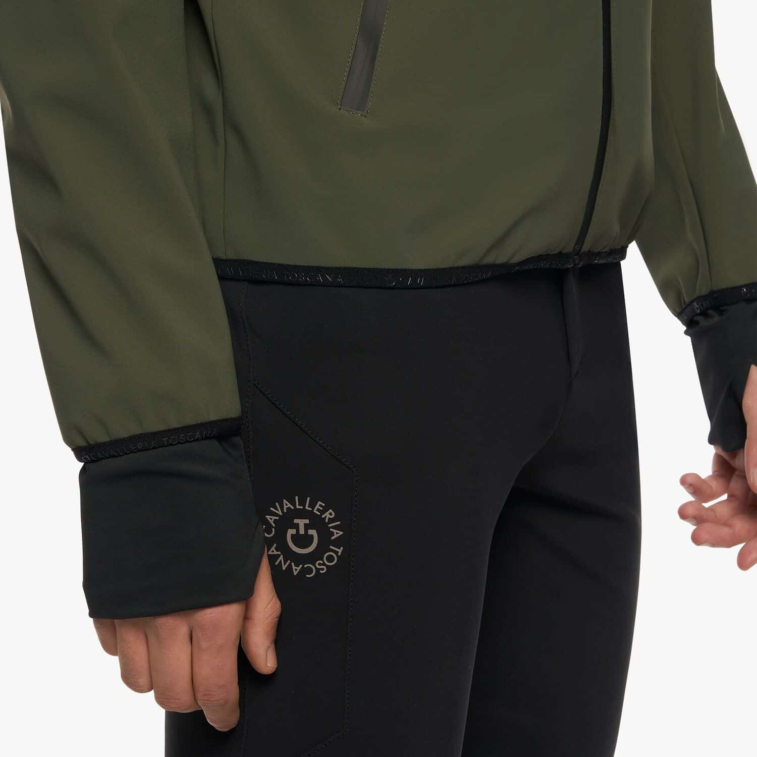 Protégez-vous des éléments avec style lors de vos activités équestres et de plein air avec cette veste Cavalleria Toscana. Son style moderne et polyvalent est enrichi par des détails pratiques conçus pour résister à différents types d’intempéries : le tissu performant est imperméable et coupe-vent, les fermetures à glissière placées dans une bande de couture thermoactivée constituent une barrière supplémentaire contre les éléments et les trous pour les pouces aux poignets empêchent l’air froid de pénétrer. Le logo floqué sur la poitrine ajoute un élément distinctif au look.