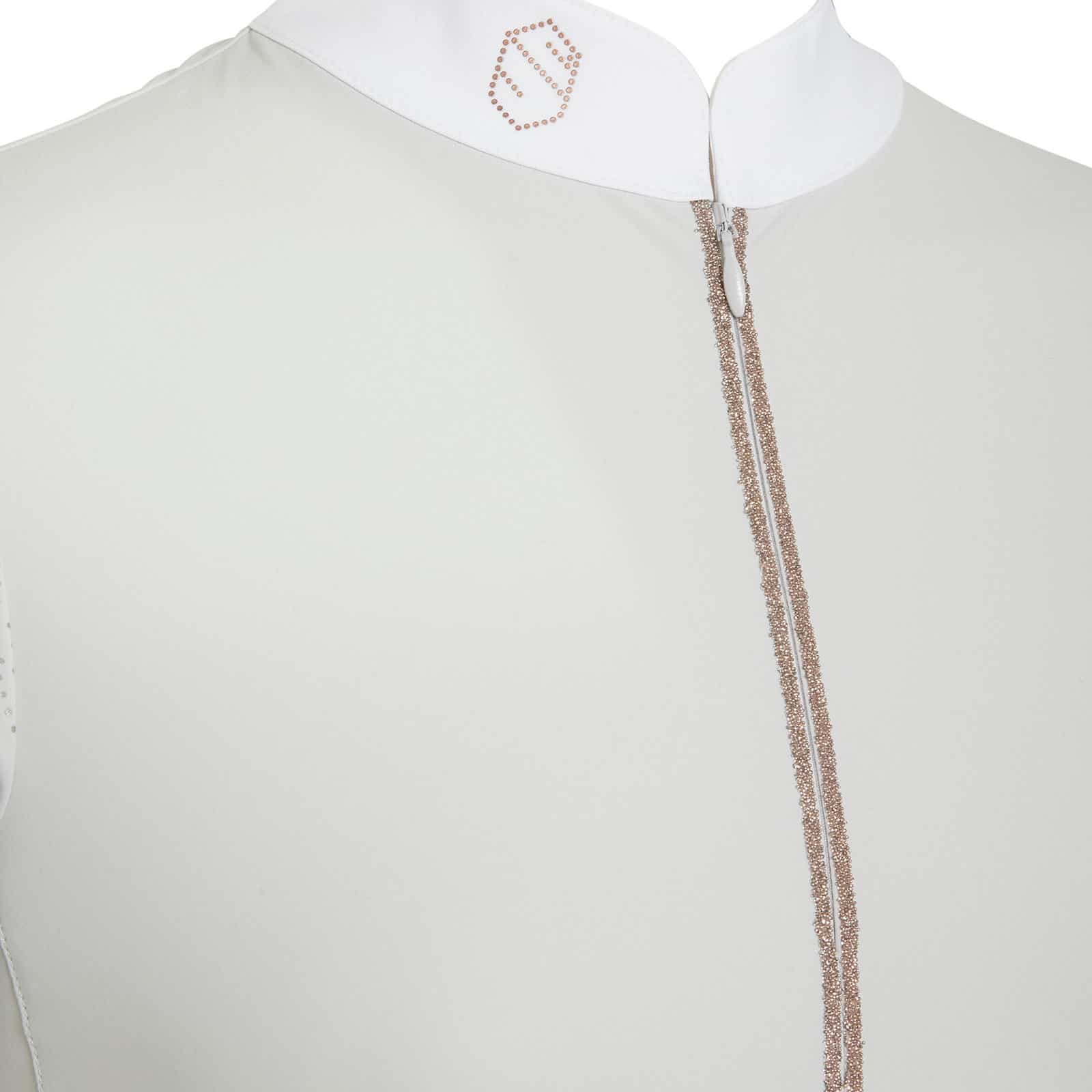 Le polo à manches courtes Aloïse est conçu en matière stretch ultra respirante, douce au toucher et confortable. Sa coupe cintrée assure un ajustement parfait pour un excellent maintien et un confort optimal. Le col se ferme avec un zipper invisible garni de Crystal Fabric Swarovski®. Le logo Samshield imprimé sur les manches et le blason en metal dots sur le col et décors print et metal dots dans le dos apportent au top Aloïse élégance et distinction dans un style sport chic.