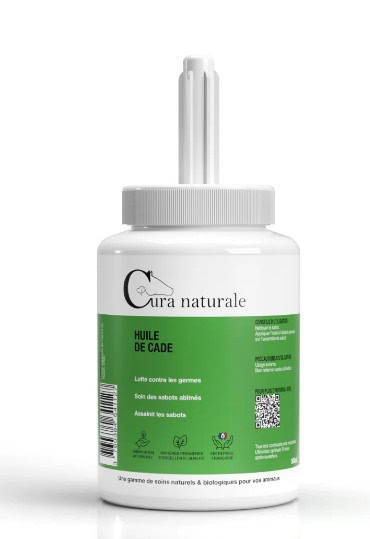 Notre Huile de Cade est une huile prête à l’emploi pour assainir les sabots. Elle soigne une pourriture de fourchettes, une fourmilière, une seime ou encore un ramollissement du périople, de la sole et des glomes.
