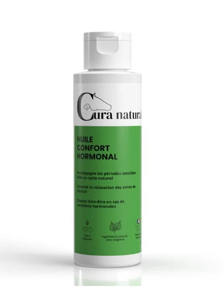 Quand une jument manifeste une sensibilité en lien avec son cycle hormonal, notre Huile confort hormonal peut s’appliquer localement sur la zone lombaire et la région ovarienne pour accompagner ces périodes délicates. Grâce à sa texture légère, elle permet un massage doux, idéal pour soulager les tensions et apaiser les spasmes. Utilisée en cas d’inconfort ou de façon anticipée dans une approche de soutien régulier, elle favorise une sensation de confort et de détente, et peut contribuer à limiter certains comportements liés aux chaleurs. Ce soin s’intègre pleinement dans une approche globale du bien-être équin, tout en offrant un moment de soin apaisant, propice à la détente et au relâchement.