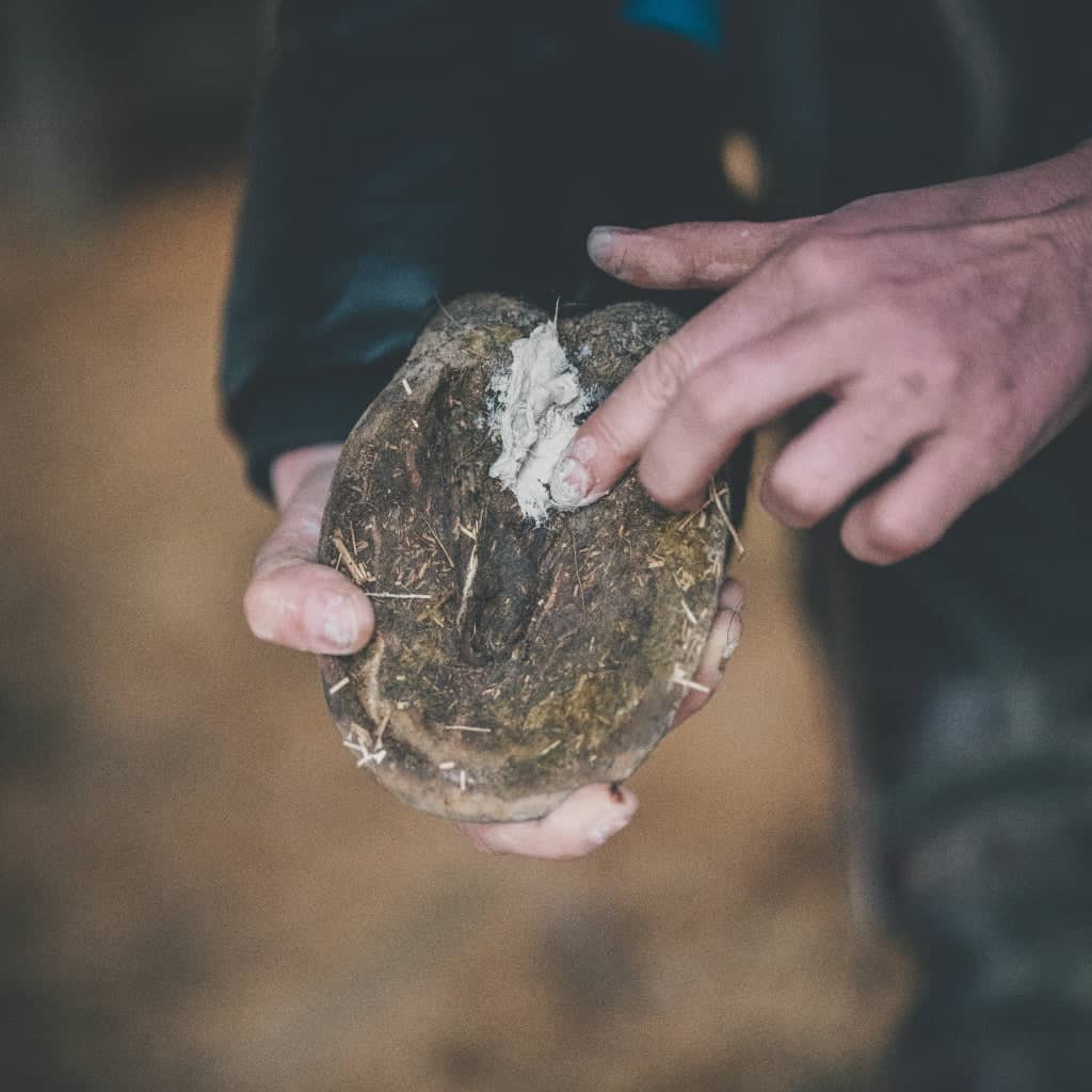 Nous vous conseillons ensuite d’utiliser de manière régulière notre Onguent entretien des sabots / Huile entretien des sabots ou notre Onguent terrains humides / Huile terrains humides selon la saison pour entretenir une bonne qualité de corne et protéger les sabots.