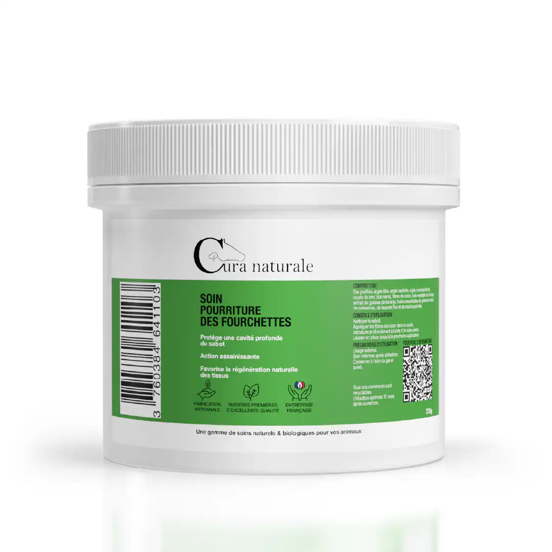 Notre Soin pourriture des fourchettes est une pâte d’argile fibreuse, enrichie et prête à l’emploi pour favoriser la guérison d’une lésion profonde au niveau du sabot. Il soigne une pourriture des fourchettes, un évasement de la paroi ou un abcès.