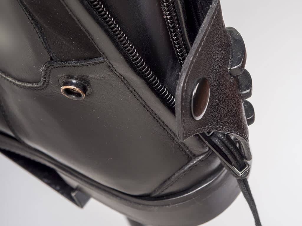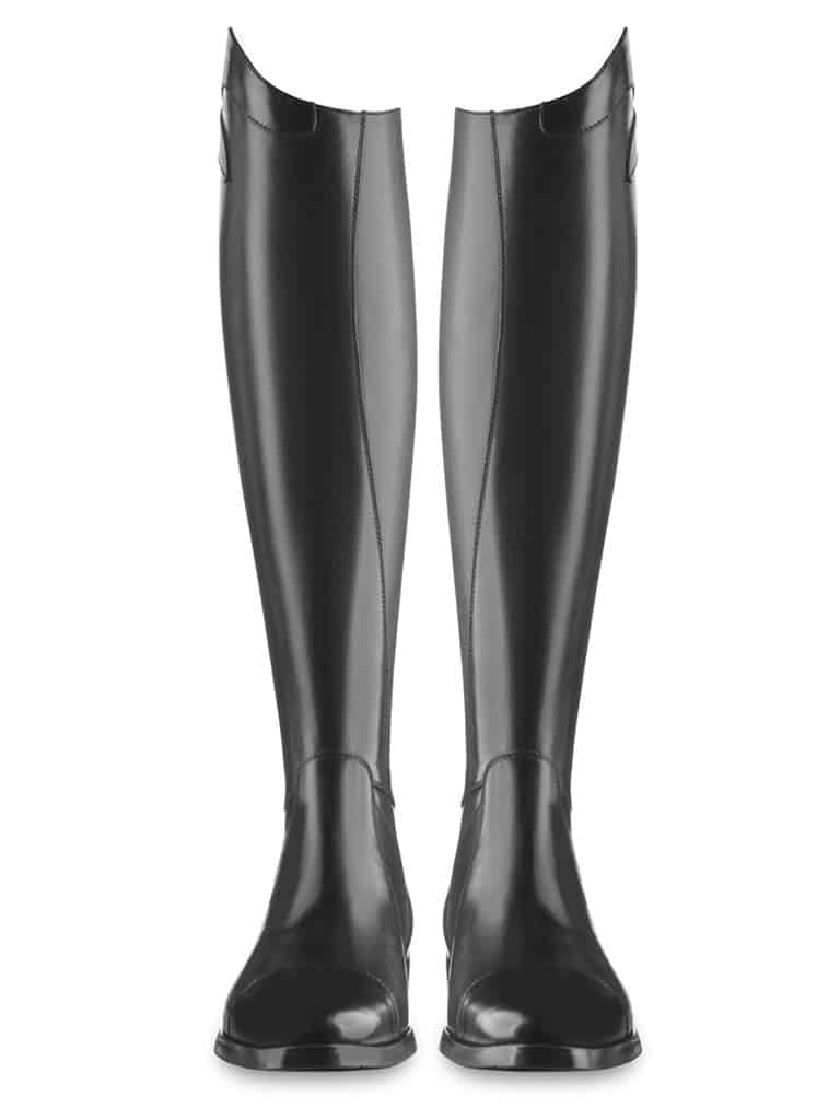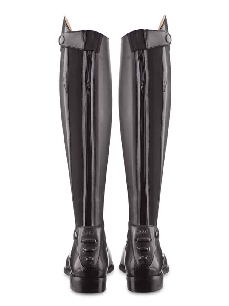EGO7 Aries, bottes d’équitation hautes en cuir pleine fleur avec bout cousu, fermeture à glissière arrière et ligne de tête espagnole : un design moderne combiné à un style haut de gamme. Tous les modèles EGO7 sont dotés d’une bande élastique à l’arrière. Cela garantit un confort maximal, une liberté de mouvement et un ajustement sur mesure, comme un gant, à chaque mollet, ainsi qu’une résistance extrême à l’usure et un entretien facile du matériau innovant E-tex. Le panneau intégral protège efficacement l’intérieur du mollet et garantit un contact parfait avec le cheval.