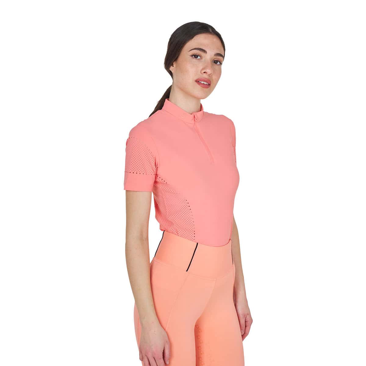 Pour compléter le design, le logo Equestro sur le col apporte une touche emblématique et reconnaissable. Ce t-shirt technique allie performance, élégance et souci du détail, ce qui le rend idéal pour l’entraînement et les loisirs.