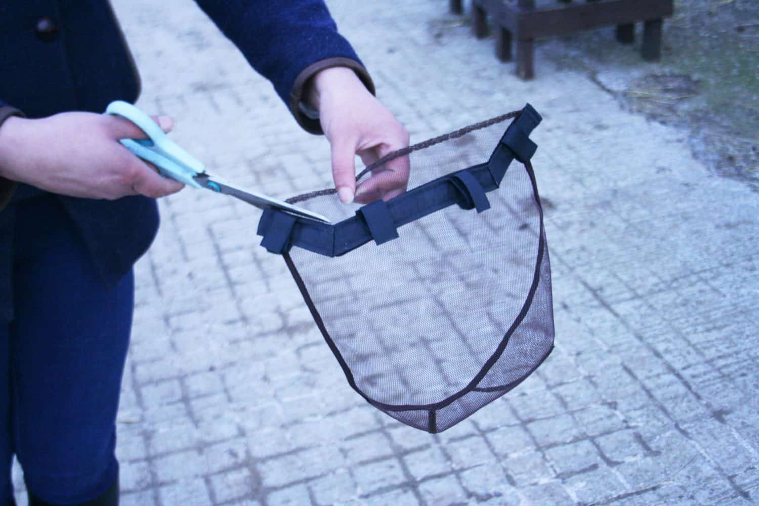 Le filet est conçu pour avoir une maille fine, rugueuse mais confortable, qui est profilée. La raison de cette rugosité est qu’elle soulage théoriquement le cheval en lui « grattant » doucement le nez. C’est également la raison pour laquelle trois filets sont inclus dans le paquet acheté, de sorte qu’une fois la rugosité usée, vous pouvez la remplacer par une nouveau. Cela signifie également que le filet doit être placé près du museau de votre cheval. C’est pourquoi le filet est conçu pour pouvoir être coupé à la longueur voulue, afin que vous puissiez obtenir l’ajustement parfait et le meilleur effet pour votre cheval.