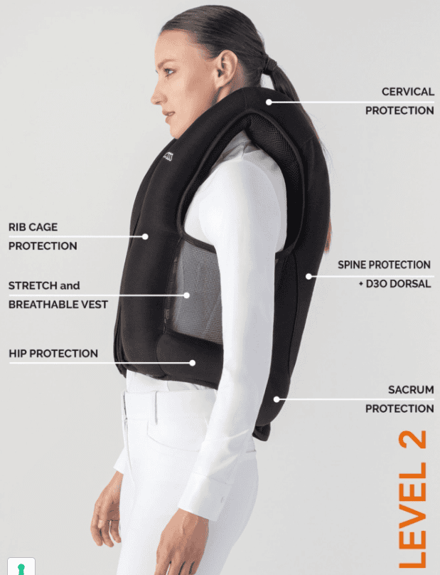 Le nouveau gilet airbag Belair L2 offre une protection encore plus efficace grâce à la protection dorsale D30 Level 2, garantissant une sécurité encore plus complète pour le cavalier tout en conservant confort et liberté de mouvement.