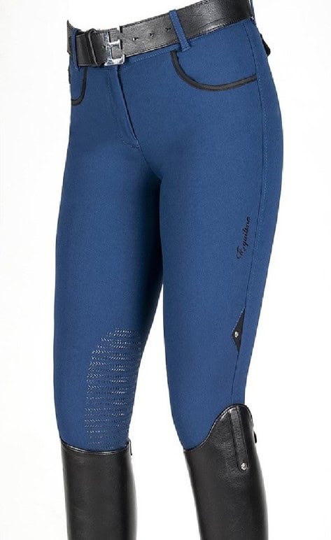Culotte d’équitation Equiline avec renforts aux genoux Octavia. Culotte d’équitation pour femme fabriquée à partir du célèbre tissu Schoeller. Cette culotte est dotée du système de renforts aux genoux Equiline, de deux poches avant et de deux poches arrière avec bande décorative. Système de fermeture extensible Equiline au bas des jambes.
