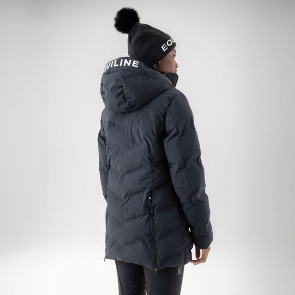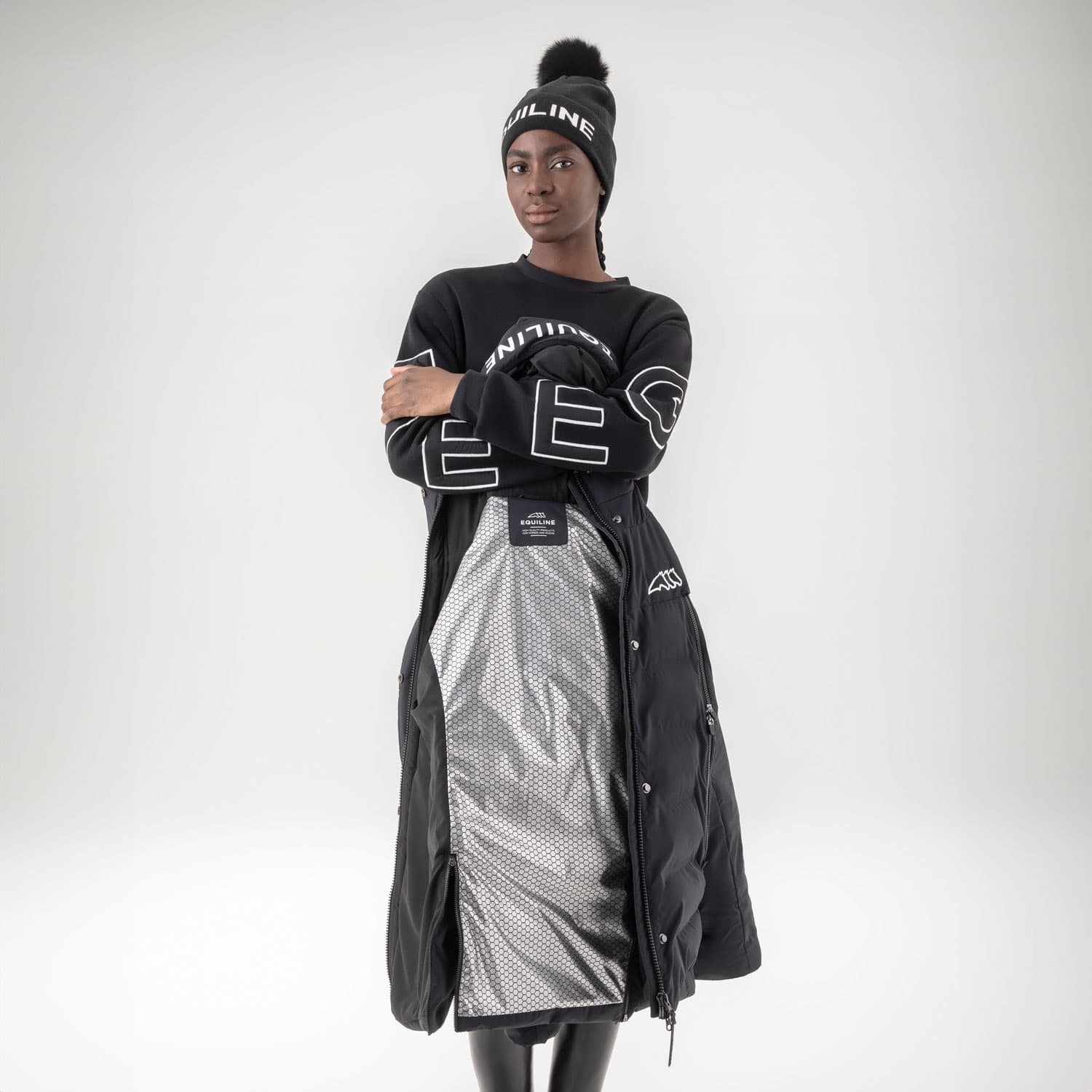 Dotée de deux poches zippées, d’un zip frontal bidirectionnel et de deux fentes d’aération zippées sur le bas, elle offre à la fois praticité et style. Le tissu de doublure thermorégulateur E-TRW apporte une chaleur enveloppante, tandis que le logo Equiline sur la capuche arrière ajoute une touche de sophistication.