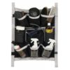Vous gardez à portée de main votre matériel de pansage. Pratique, il se fixe grâce à ses pattes auto-agrippantes sur les barreaux de la porte de box, ou sur un support mural à proximité. Le support est en nylon renforcé, équipé de 6 grandes poches en maille pour y ranger vos brosses, accessoires et autres bandes ou protections, ainsi que d’une poche à fermeture à glissière et de deux supports matelassés pour les produits de soins (lotions, shampooing…).