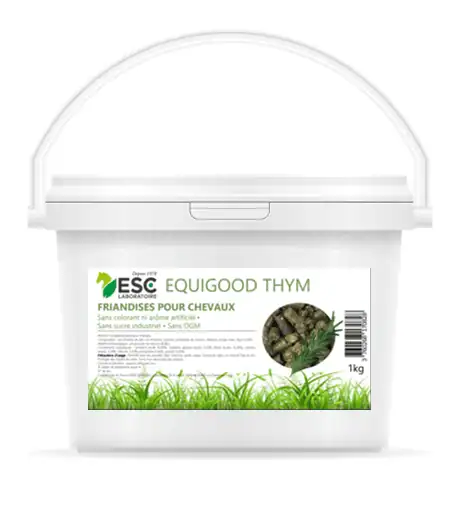 Equigood Thym est une friandise très appétissante et qui sent bon la plante. Sans arôme, sans colorant artificiel, sans sucre industriel, ni OGM, Equigood Thym est une récompense très saine pour les chevaux et poneys. Très faciles à donner, les mini-sticks Equigood Thym ont une texture idéale ni trop sèche ni trop friable et ne s’effritent pas dans les poches.