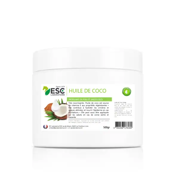 Du fait de sa composition, l’utilisation de l’huile de coco présente de nombreux atouts pour les chevaux : extrêmement nourrissante, elle permet d’hydrater les crinières et queues abîmées ou râpées. En cas d’irritation ou de crevasse, elle contribuera à hydrater et régénérer l’épiderme. Elle peut même être appliquée sur les sabots en cas de corne sèche et cassante.