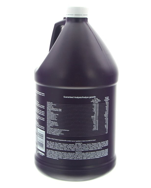 « World’s Nr. 1, supplément minéral vitaminé qui fourni toutes les substances nécéssaires au cheval de performance ou de loisir. Composition: Humidité, Sulfate de Magnésium, Chlorure de Potassium, Carbonate de Calcium, Sorbitol, Bicarbonat de sodium. Constituants Analytiques: Humidité 75%, Protéines brutes 8%, Cellulose brute 2%, Matière grasse brute 1%, Cendres brutes 3,5%,Potassium 0,31%, Magnésium 0,06%, Sodium <1%. Additifs (par kg): Vitamines: 220’500 IE Vit.A, 88’200 IE Vit.D3, 1’100 IE Vit.E, 220mg Acide Folic, 0,63mg Biotine. Oligo-Eléments: 9,4g Fer (Sulfate de Fer), 1,2g Manganese (Sulfate de Manganese), 1,1g Cuivre (Sulfate de Cuivre), 340mg Zinc (Sulfate de Zinc monohydraté), 20mg Selenium (Sodium-Selenit E8), 8mg Iode (Iodure de Potassium). Formule Européenne: NE CONTIEN AUCUNE SUBSTANCE PROHIBÉE FEI & JOCKEY CLUB, 3,8lt/63-126 jours
