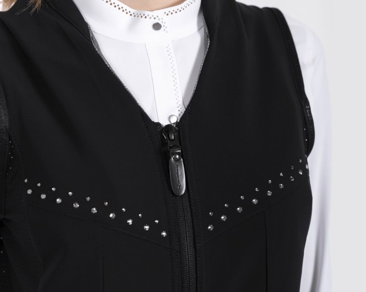 L’AIRBAG FREEJUMP CRYSTAL est conçu avec des tissus italiens soyeux et perforés au niveau des flancs, offrant un confort et une aération exceptionnels. Sa coupe ajustée et sa conception avec des matériaux souples assurent une protection optimale et un confort maximal. Les cristaux sur la poitrine apporte élégance et distinction.