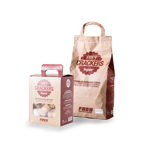 Les crackers au gingembre FREY sont fabriqués à partir de précieuses céréales et d’autres ingrédients naturels dans un petit moulin, selon des méthodes traditionnelles, et parfaitement cuits. Sans mélasse, sans sucre, sans conservateurs et sans arômes artificiels. C’est ce qui les rend si savoureux et si sains pour votre cheval.