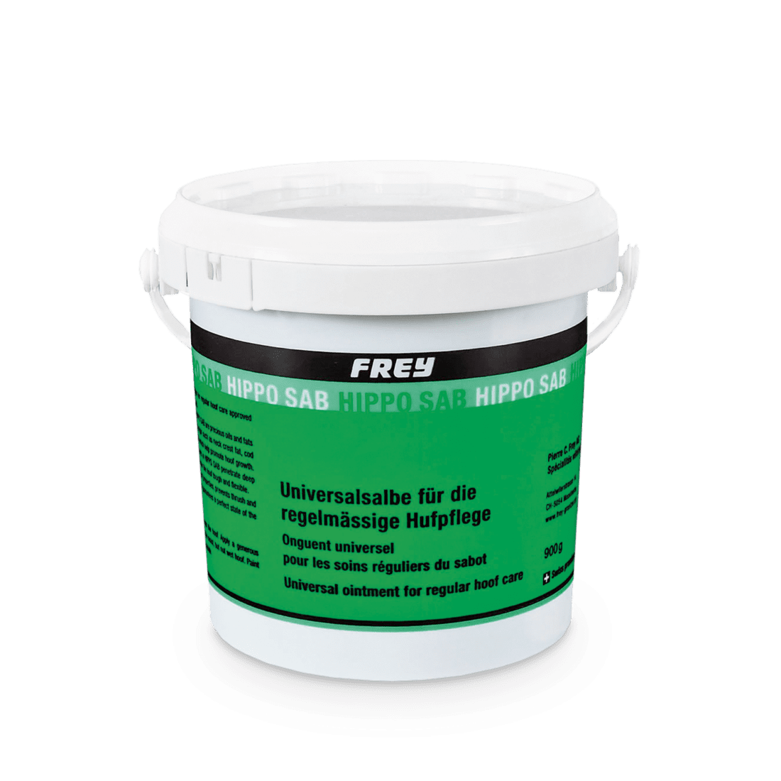 Pommade universelle naturelle et soignante pour sabots Pommade universelle riche en substances nutritives pour le soin quotidien des sabots. Contient de la graisse de peigne de haute qualité, de l’huile de foie de morue et de l’huile de laurier. Stimule la croissance et prévient la pourriture de la fourchette et d’autres maladies du sabot.