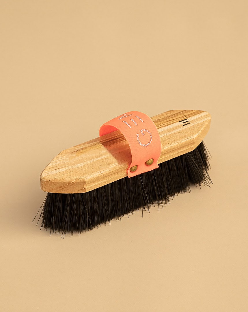 C’est la brosse à utiliser en fin de pansage, pour peaufiner et faire briller de mille feux Ouragan.