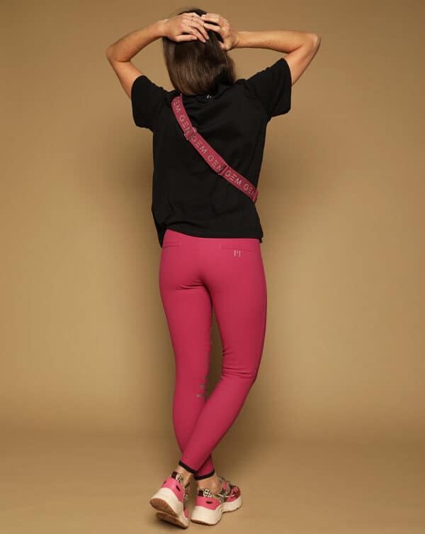 Grips GEM orange à l’intérieur des genoux, E de GEM sur chaque fesse, logo sur le passant arrière de la ceinture.