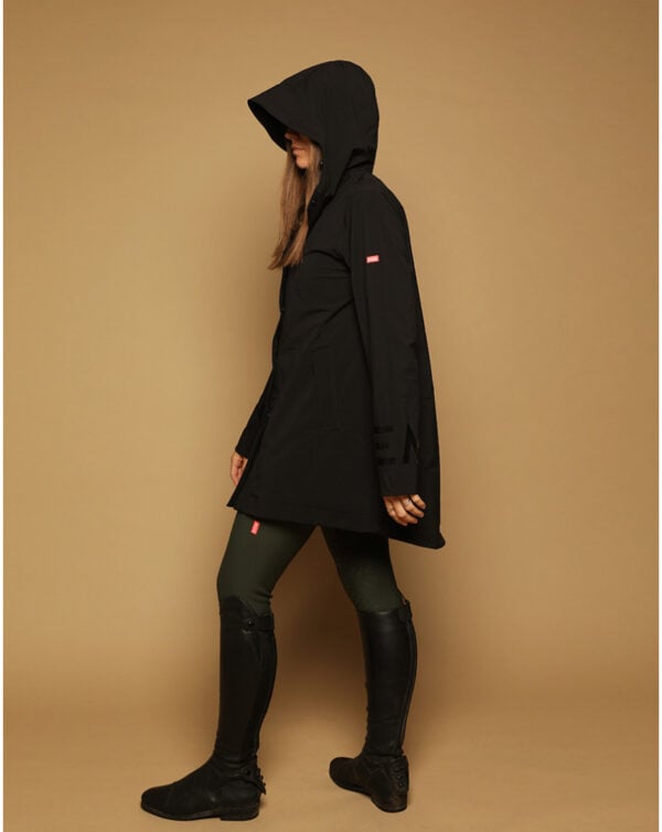 La veste de pluie Noname vous protègera du vent et de la pluie, à pied comme à cheval. Totalement déperlante, sa matière légère ne vous transformera pas votre séance de mise en selle en séance de sudation totale : notre veste de pluie a été pensée pour être aérée. On aime ses détails GEM sur les manches, au dos, et sa grande capuche avec visière nous permet d’affronter toutes les intempéries.