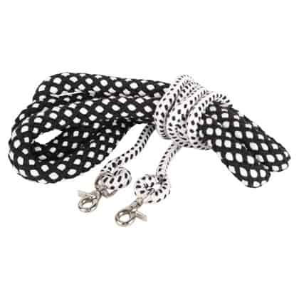 Aide le cheval à se détendre pendant le travail à la longe. En coton très doux et polypropylène robuste. L’enrênement est ajustable en longueur.