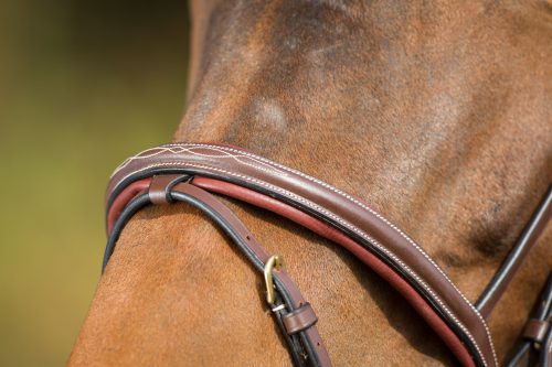 Bridon HFI « Comfort« . Offre un grand confort avec sa têtière, frontal et muserolle doublés dans un cuir souple. Nombreux réglages.
