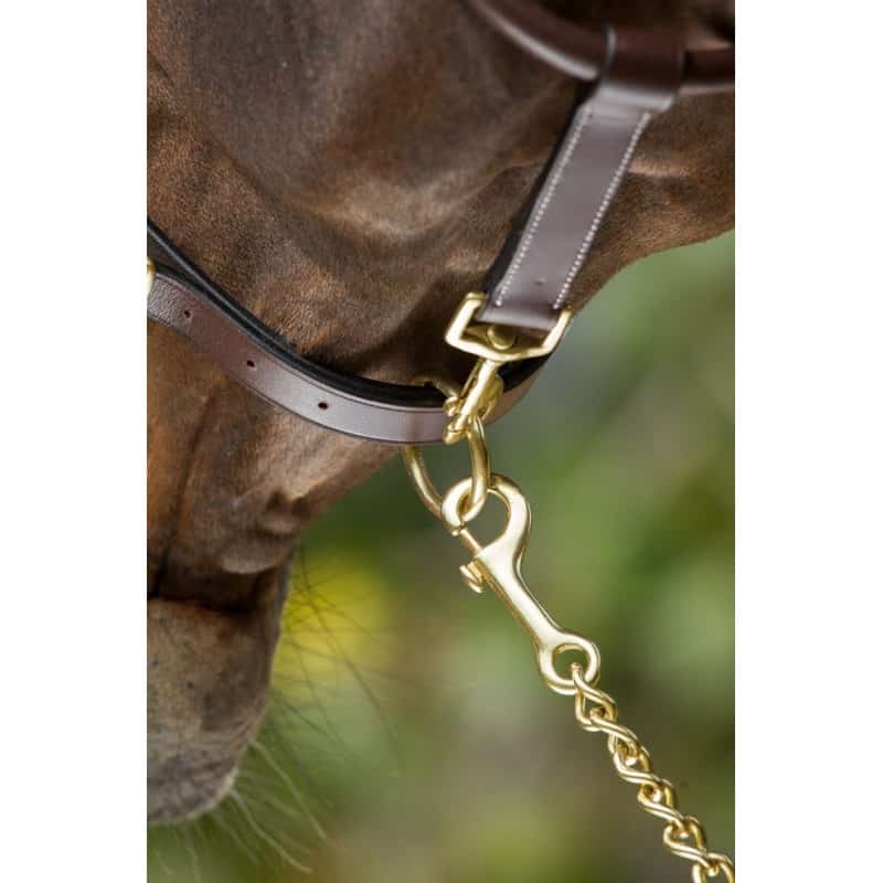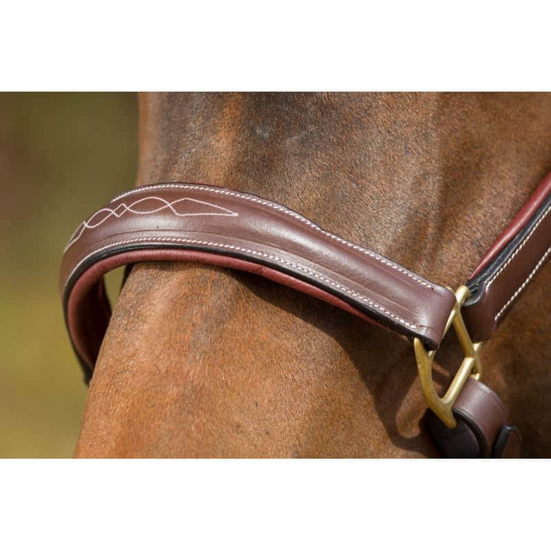 • Muserolle rembourrée et doublée de cuir souple et ornée d’une broderie décorative