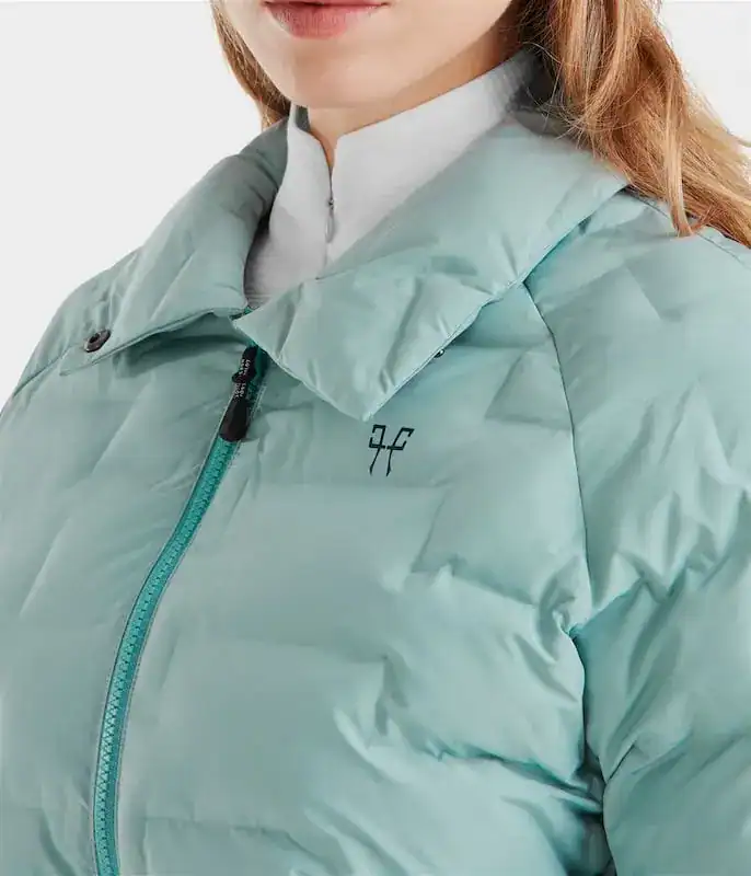Le col est réhaussé et se ferme avec un bouton pression pour mieux vous protéger du froid. Compressible, elle se glisse facilement dans votre sac, pour vous suivre dans toutes vos aventures équestres.