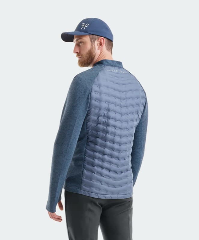 Pour s’adapter aux variations de température et à l’intensité d’effort en équitation, nous avons développé la Storm : une veste hybride thermo-régulante qui tient chaud sans risque d’hyperthermie dûe à l’effort. Légère, elle peut se porter seule par dessus un tee-shirt par temps chaud, ou sous une veste de protection par temps humide et froid. La combinaison de différentes matières répond aux besoins thermiques des cavaliers par zone. Les panneaux matelassésthermocollés en duvet-polyester apportent de la chaleur sur le thorax, le ventre et le dos et protège du vent. Les panneaux en maille acordéon légère et très stretch sur les bras, les épaules et les côtés évacuent efficacement l’humidité du corps et assurent une grande liberté de mouvement. Les micro-perforations sous les bras et sur les côtés favorisent la circulation de l’air pendant l’effort.